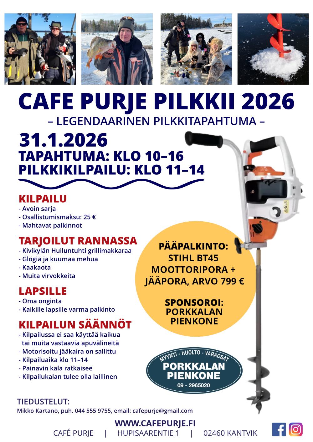 🎉 Cafe Purje Pilkkii 31.1.2026 Kirkkonummen Kantviikissa – koko perheen pilkkitapahtuma